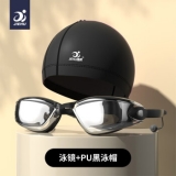 捷虎成人泳镜近视防雾防水高清游泳眼镜泳帽套装专业游泳装备 电镀黑两件套—如需近视联系客服 默认平光