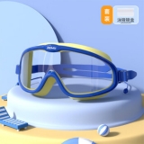 捷虎儿童泳镜防水防雾高清大框男童女童游泳装备泳帽泳镜套装 蓝黄(升级连体耳塞)配镜盒