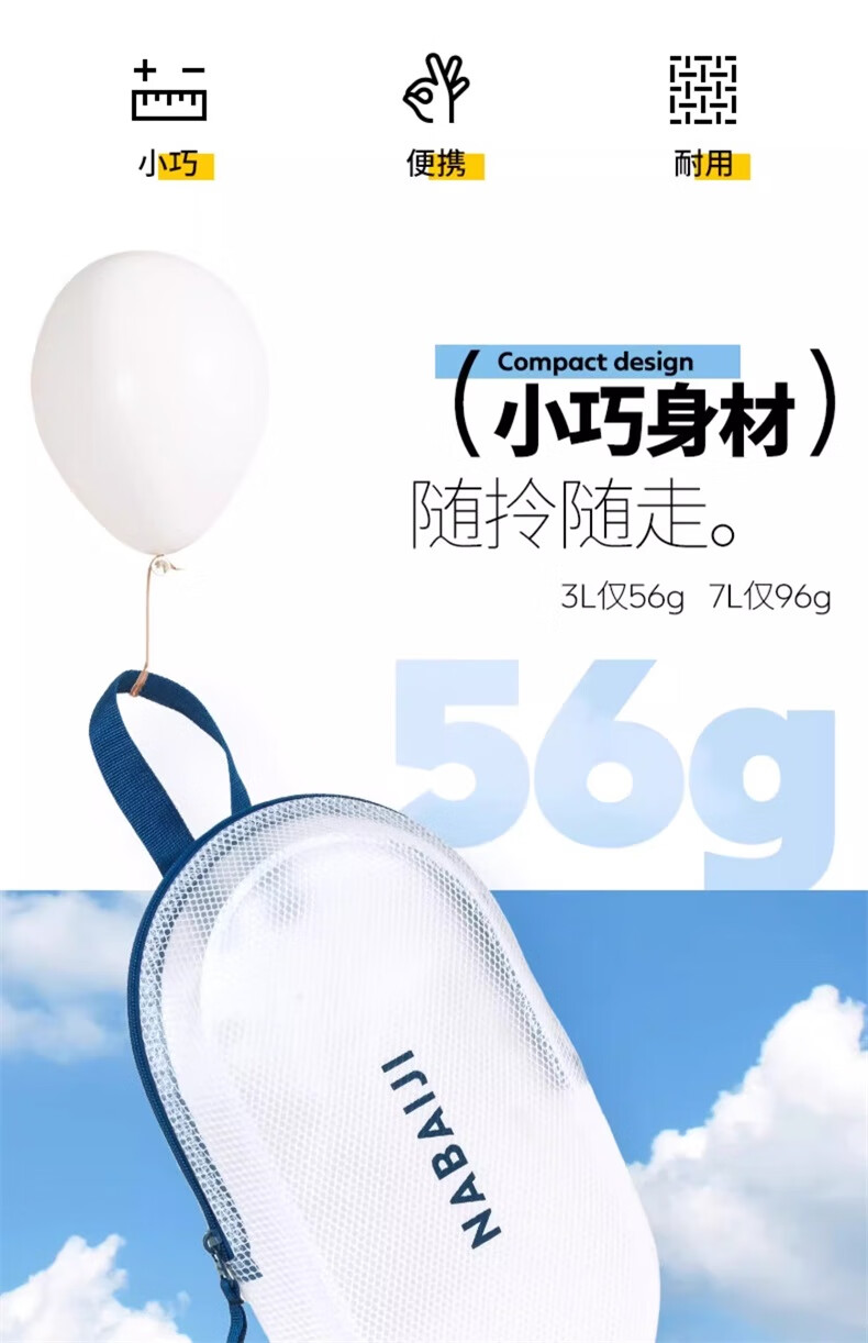 商品名称:迪卡侬(DECATHLON)游泳健身女沙滩包收纳袋古典蓝白3L2398060