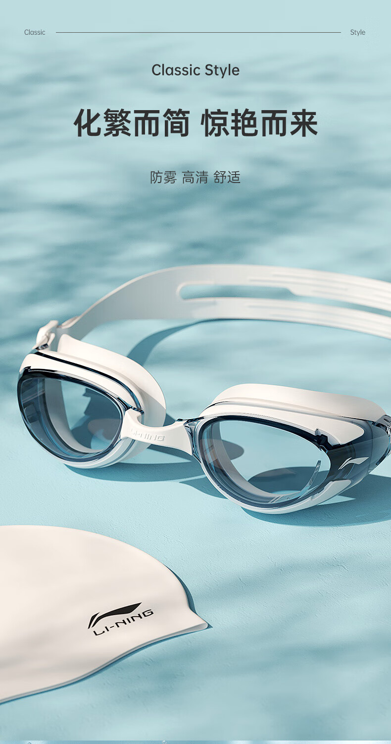 商品名称:李宁LI-NING泳镜防水防雾男女高清游泳眼镜平光游泳镜LNJT224-6极光白