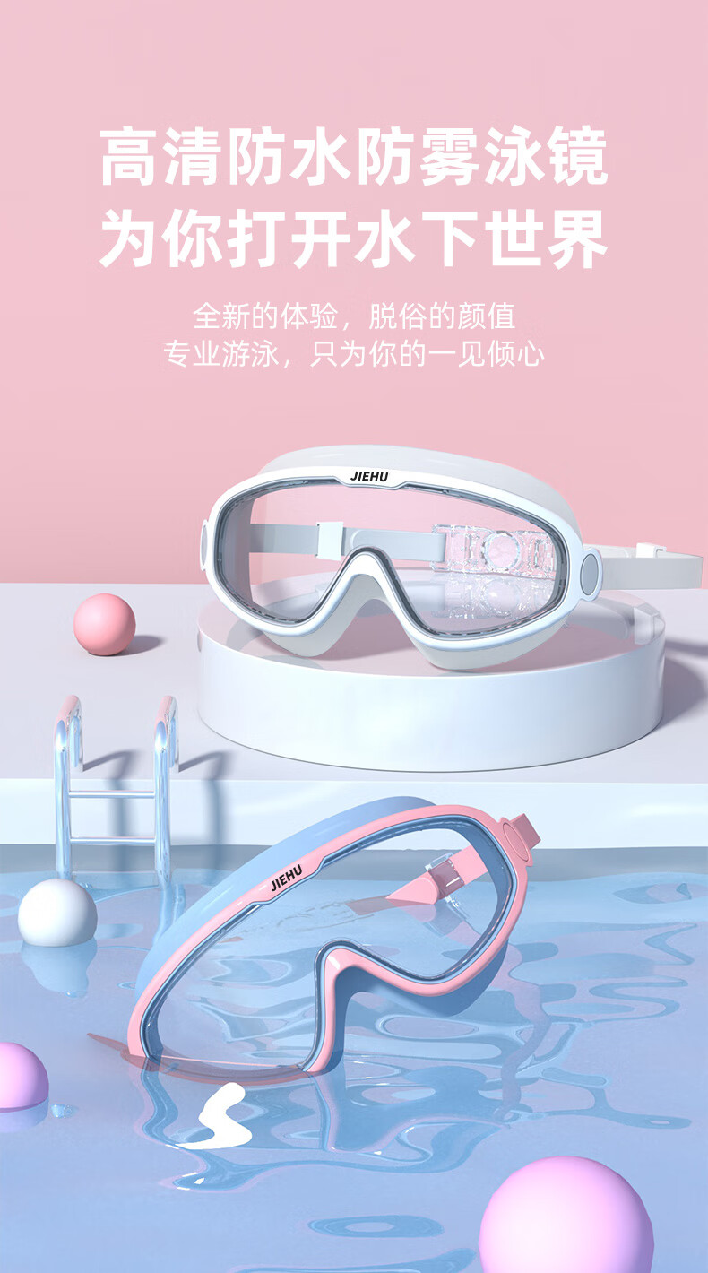 商品名称:捷虎泳镜男女成人高清防雾防水大框一体潜水游泳眼镜泳帽套装游泳装备