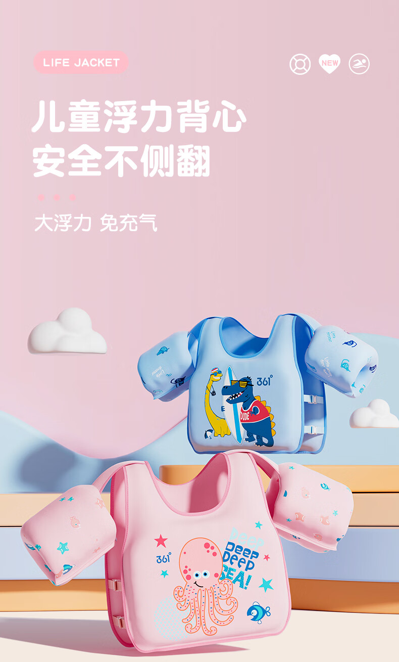 商品名称: 361°背心式救生衣儿童游泳圈宝宝手臂浮圈男女童学游泳初学者辅助装备