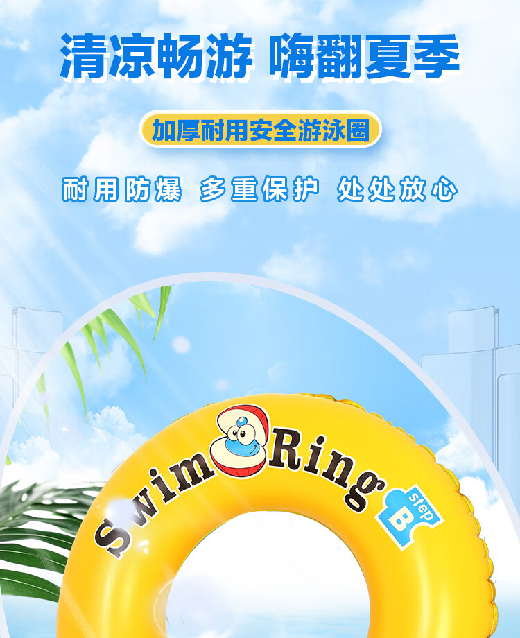 商品名称:【爆卖十万】夏季加厚游泳圈成人儿童防侧翻泳圈卡通PVC充气 18丝黄色贝壳圈 90#成人款